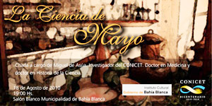 En el marco de las celebraciones del año del Bicentenario el CONICET Bahía Blanca presenta al historiador Miguel de Asúa, quien ofrecerá la charla “La Ciencia de Mayo”.