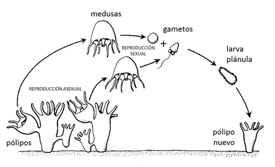 Figura 2. Esquema simplificado y generalizado del ciclo de vida de las medusas.